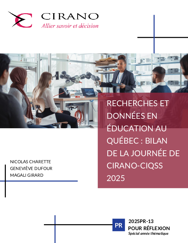 Nicolas Charette joined CIRANO in 2023 after completing a Master’s degree in Economics at the Université de Sherbrooke. He serves as a research professional and resource person for the research themes Economic and Budgetary Policies and Business Cycles and Financial Markets. He coordinates certain aspects of research mandates conducted in partnership with the Québec Ministry of Finance within the CIRANO–MFQ Research Funding Committee. In parallel with his role at CIRANO, Nicolas teaches literature at the CEGEP level and collaborates with the Commission de l’enseignement et de la recherche au collégial (CERC).