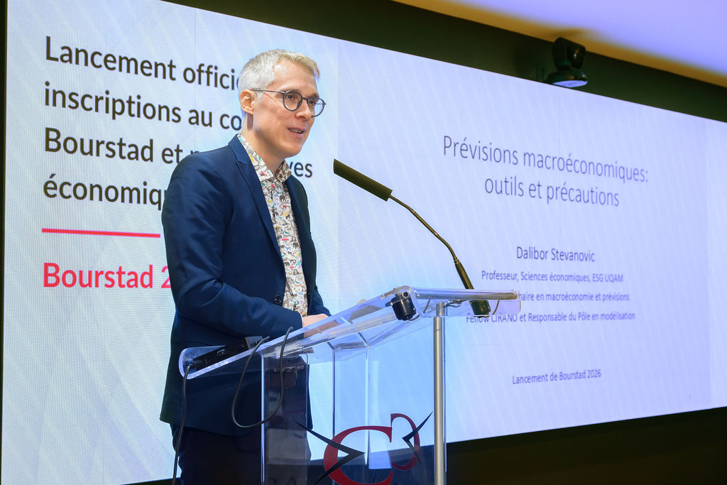 The launch evening included a conference on the 2026 economic outlook delivered by Matthieu Arseneau, Deputy Chief Economist at the National Bank of Canada, followed by a presentation by Dalibor Stevanovic, Professor at ESG UQAM and Researcher at CIRANO.
