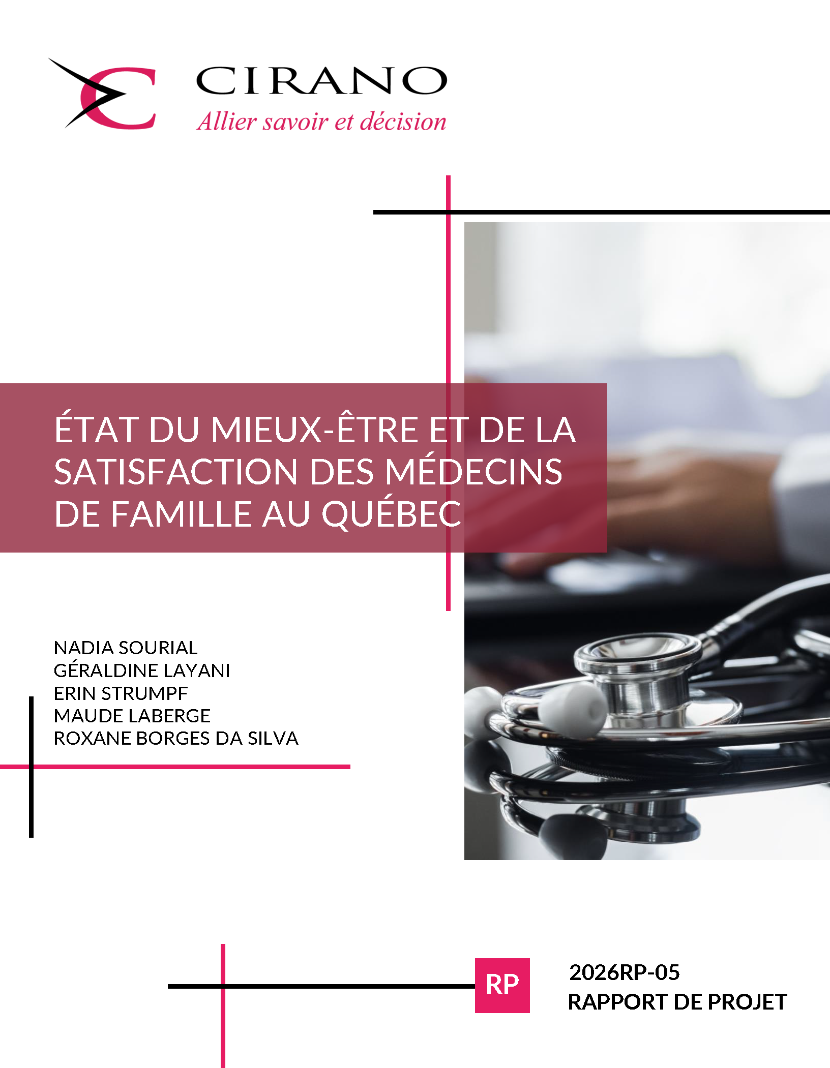 Physician well-being is a crucial element not only for the practice of family medicine but also for the performance of the health care system. Family medicine in Quebec faces major challenges, including declining retention, a shortage of family physicians, and a lack of attractiveness of the profession. To address these challenges and promote family medicine in Quebec, the Table nationale de concertation sur la valorisation de la médecine de famille was established in 2023 with the mandate to develop a plan bringing together all measures needed to enhance the value of family medicine practice and ensure their coordination. This report presents the results of a collaboration between the research team and the Table’s committee aimed at describing the state of well-being and job satisfaction among family physicians practicing in Quebec and examining the factors associated with their well-being.