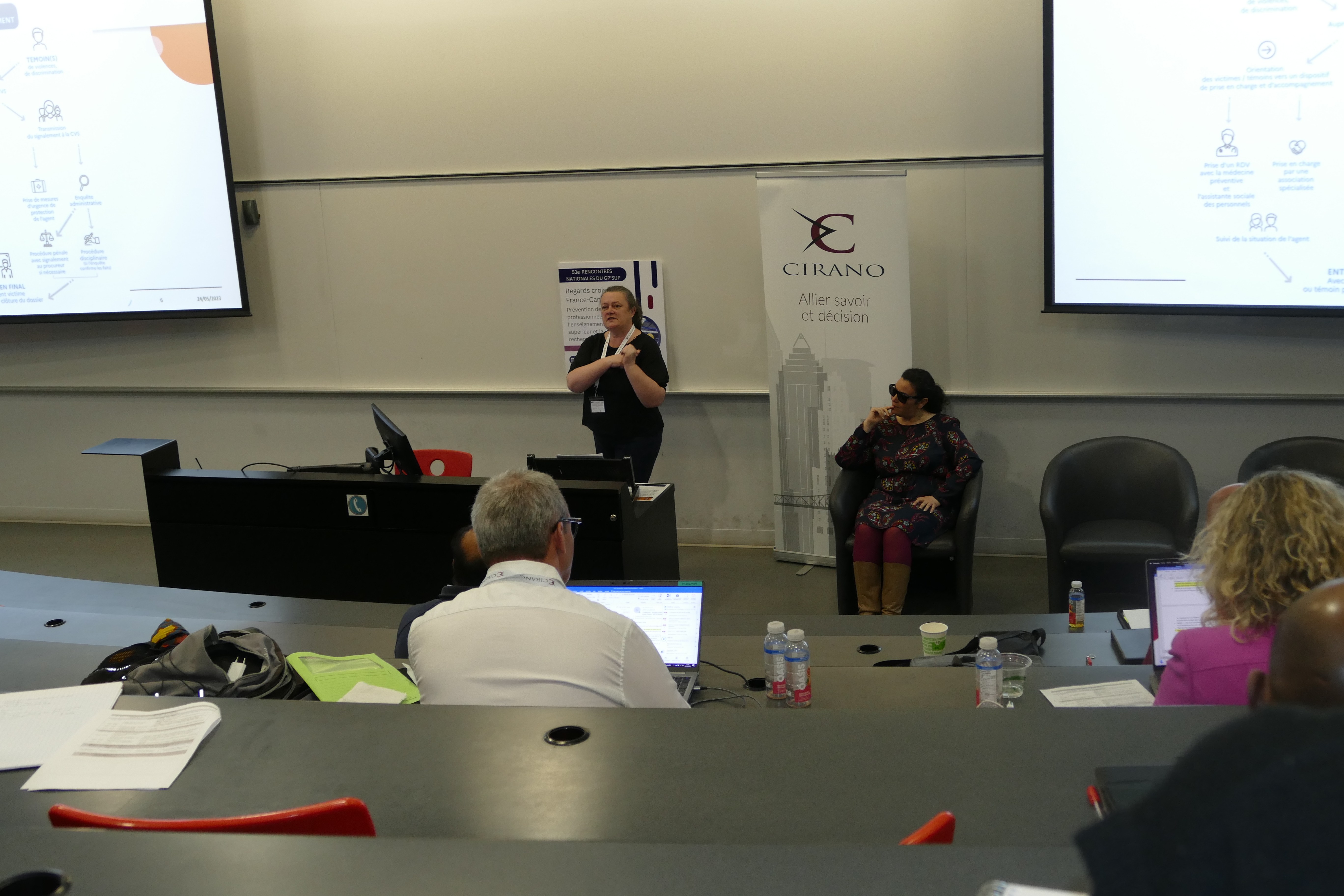 Nathalie de Marcellis-Warin, professeure titulaire à Polytechnique Montréal et présidente-directrice générale du CIRANO, était conférencière au Colloque Regards croisés France-Canada sur la prévention des risques professionnels dans l'enseignement supérieur et la recherche du 23 au 25 mai 2023. Manuelle Oudar, Présidente-directrice générale de la Commission des normes, de l'équité, de la santé et de la sécurité du travail (CNESST) était également présente et a fait une présentation sur la règlementation et l'organisation de la prévention applicable à l’enseignement supérieur et la recherche.